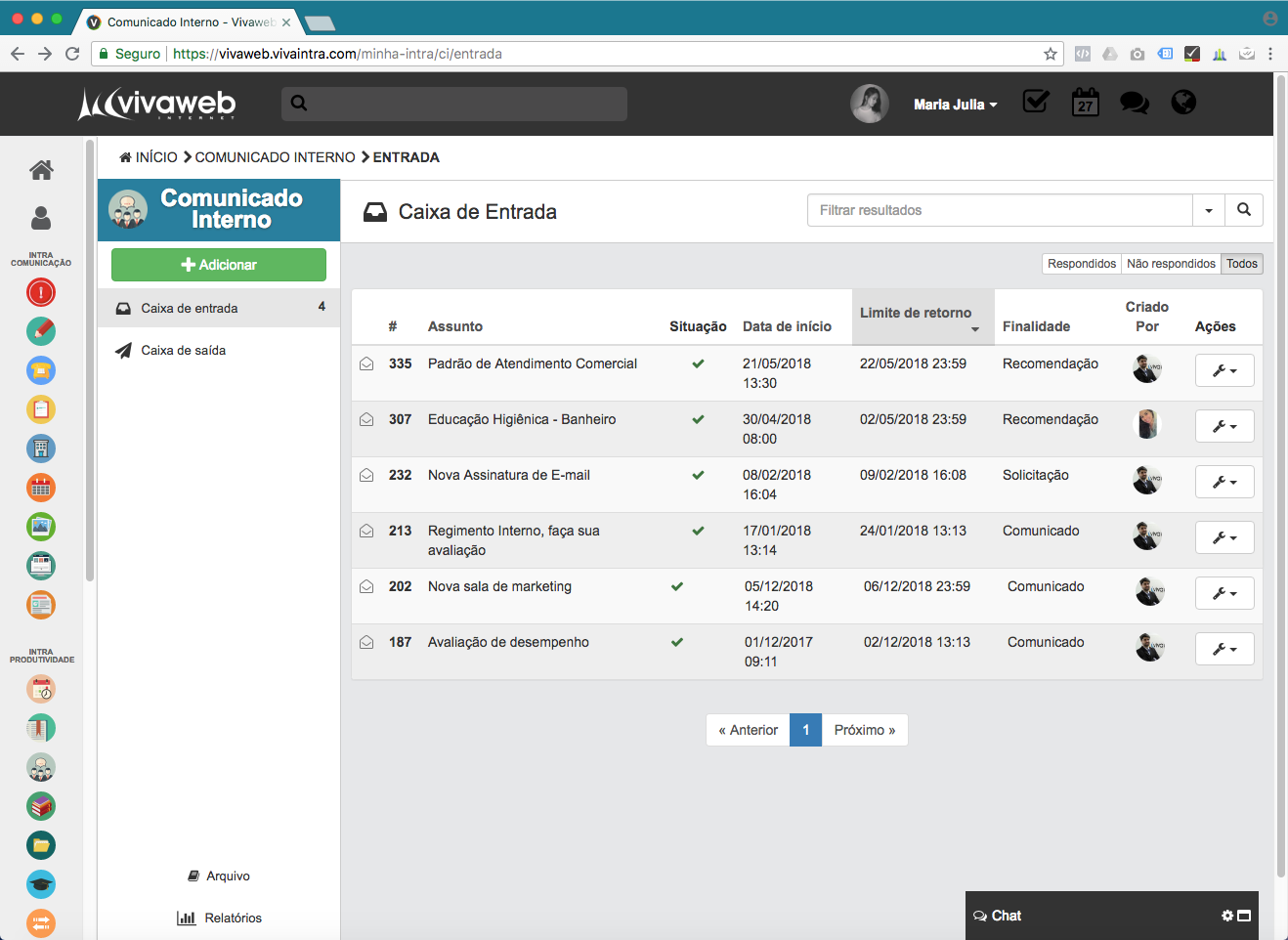 Notificações em destaque para que todos possam acessar (na intranet e no e-mail).