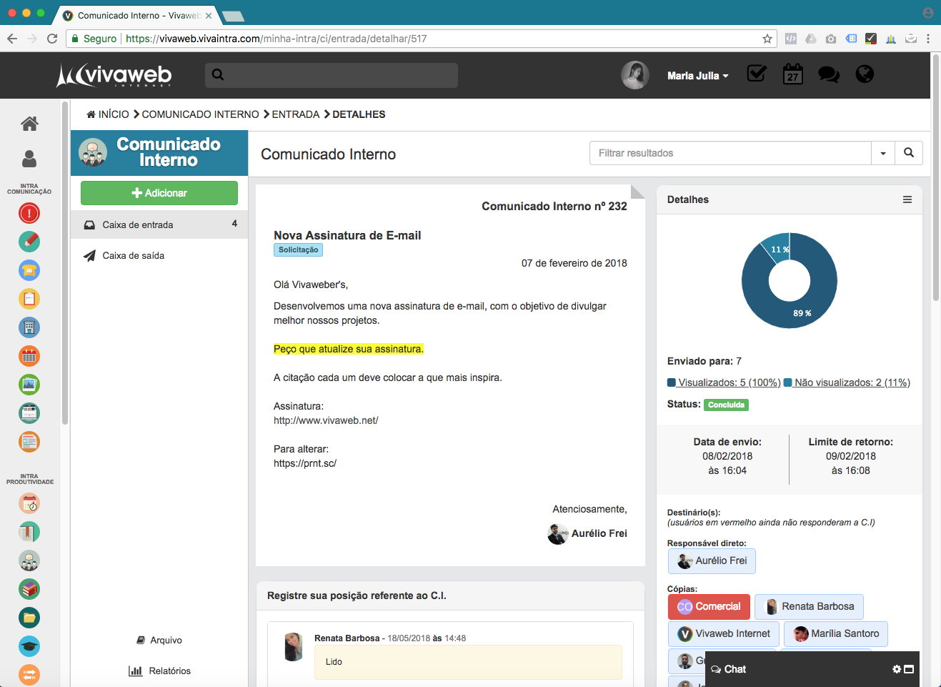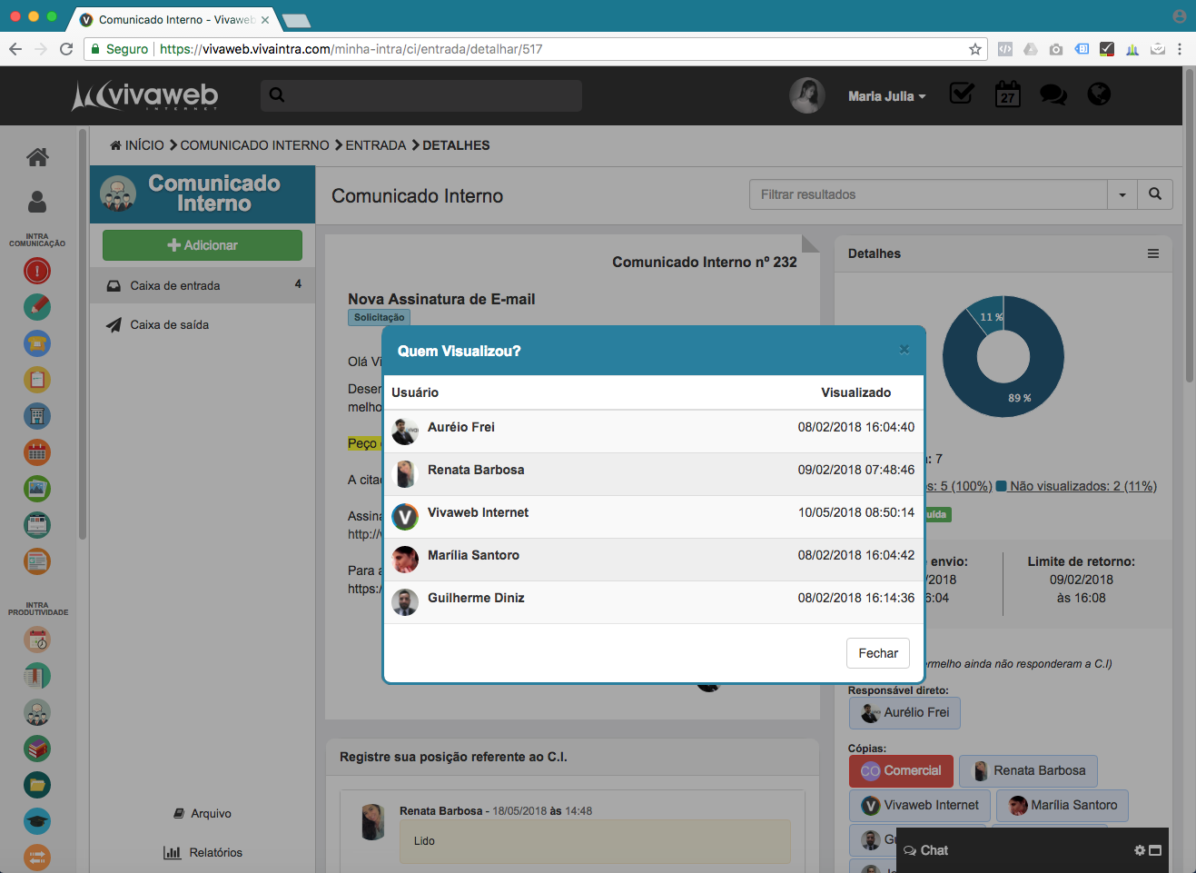 Informa quem visualiza e responde aos comunicados.