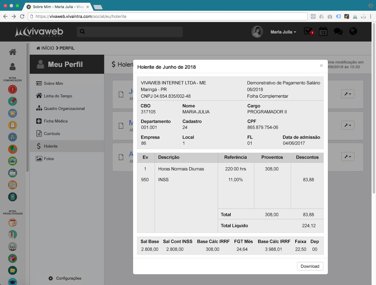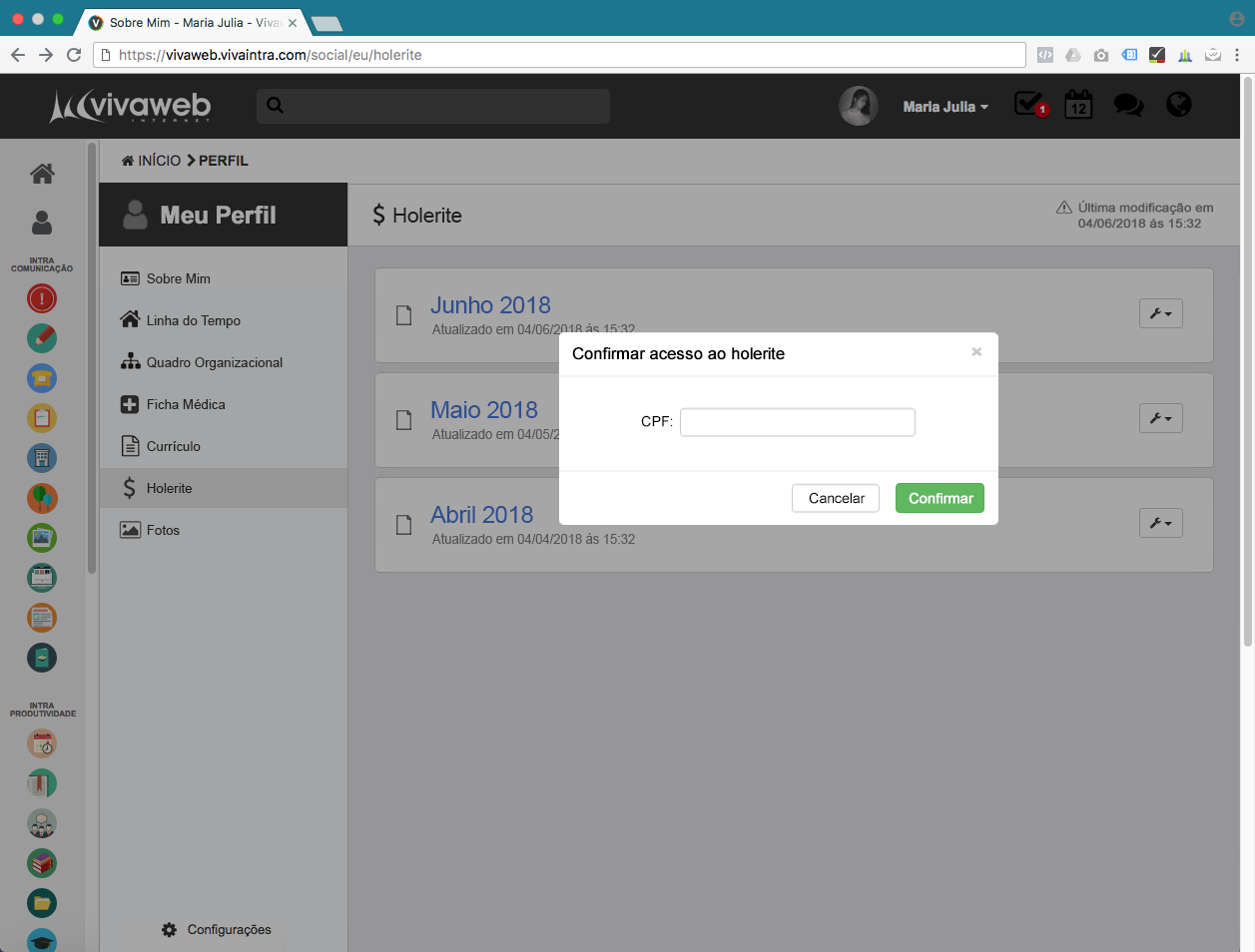 Este módulo apresenta os holerites de forma organizada e dinâmica de acordo com os meses. Disponibiliza