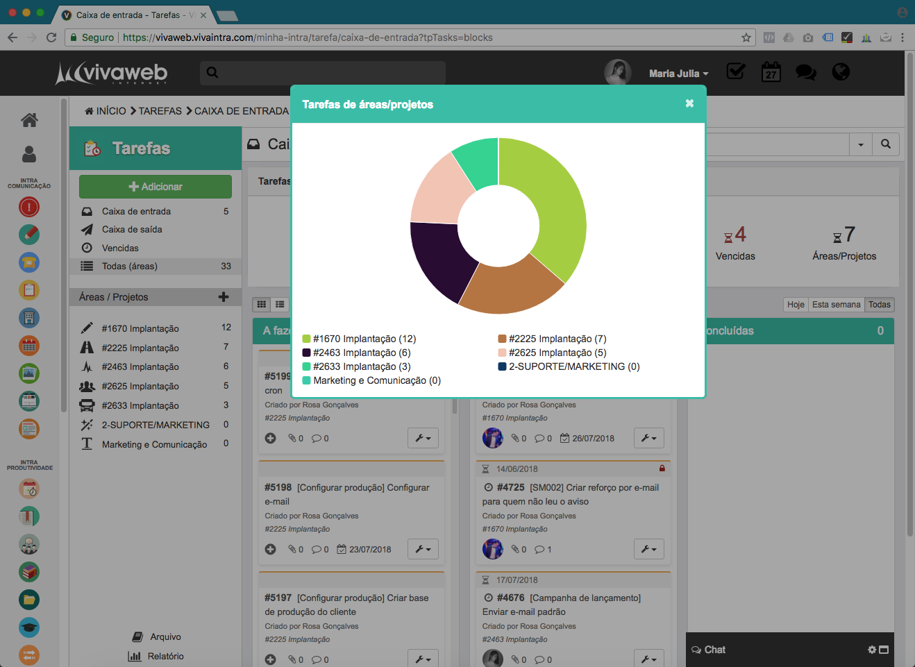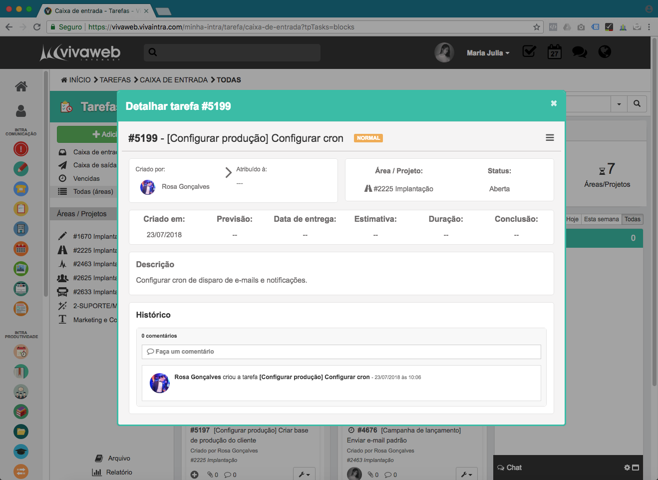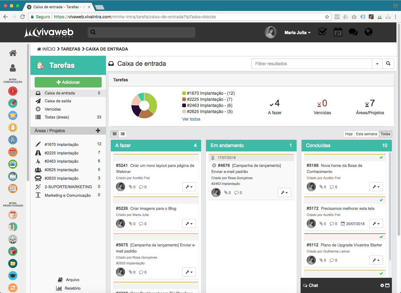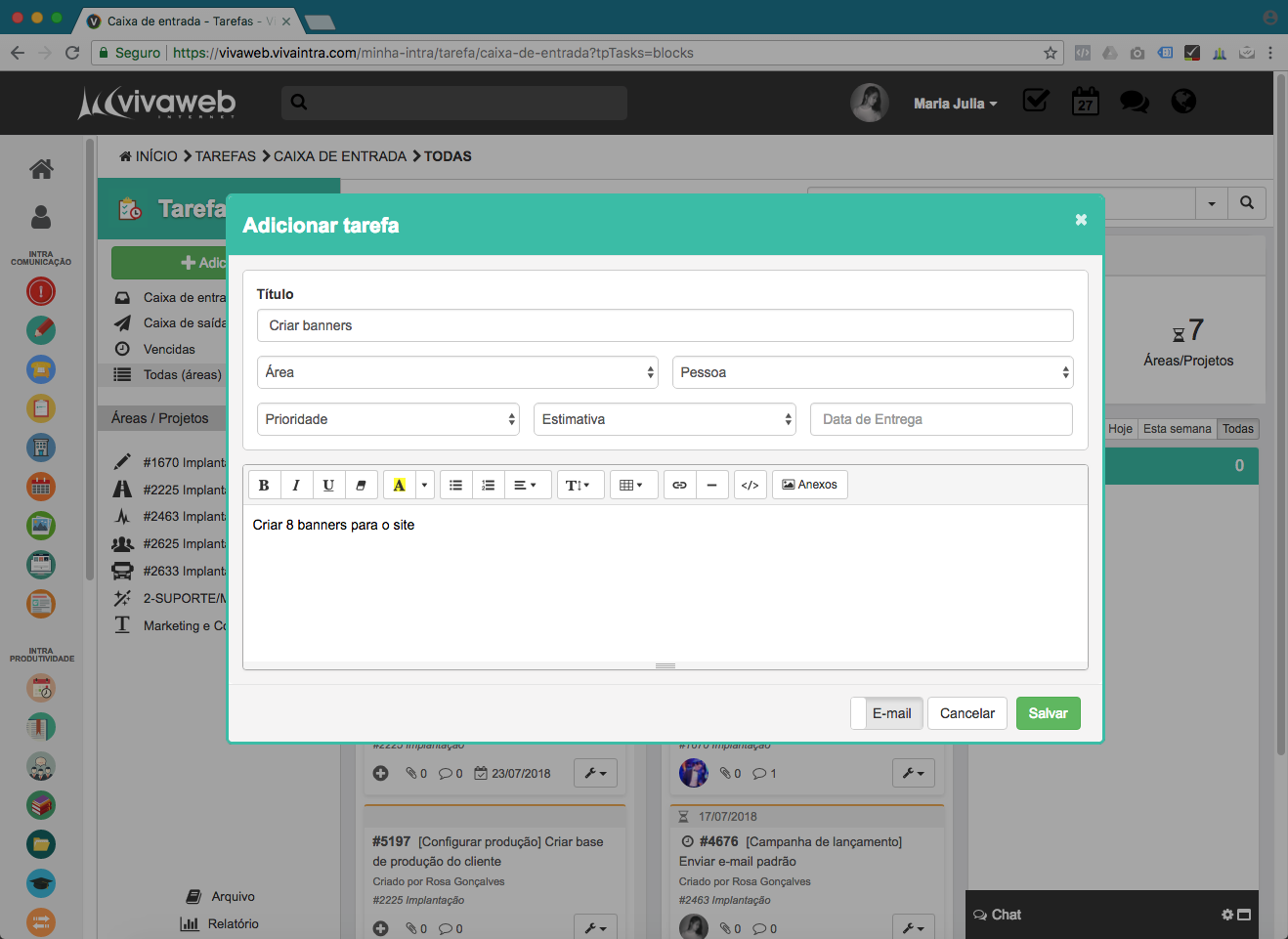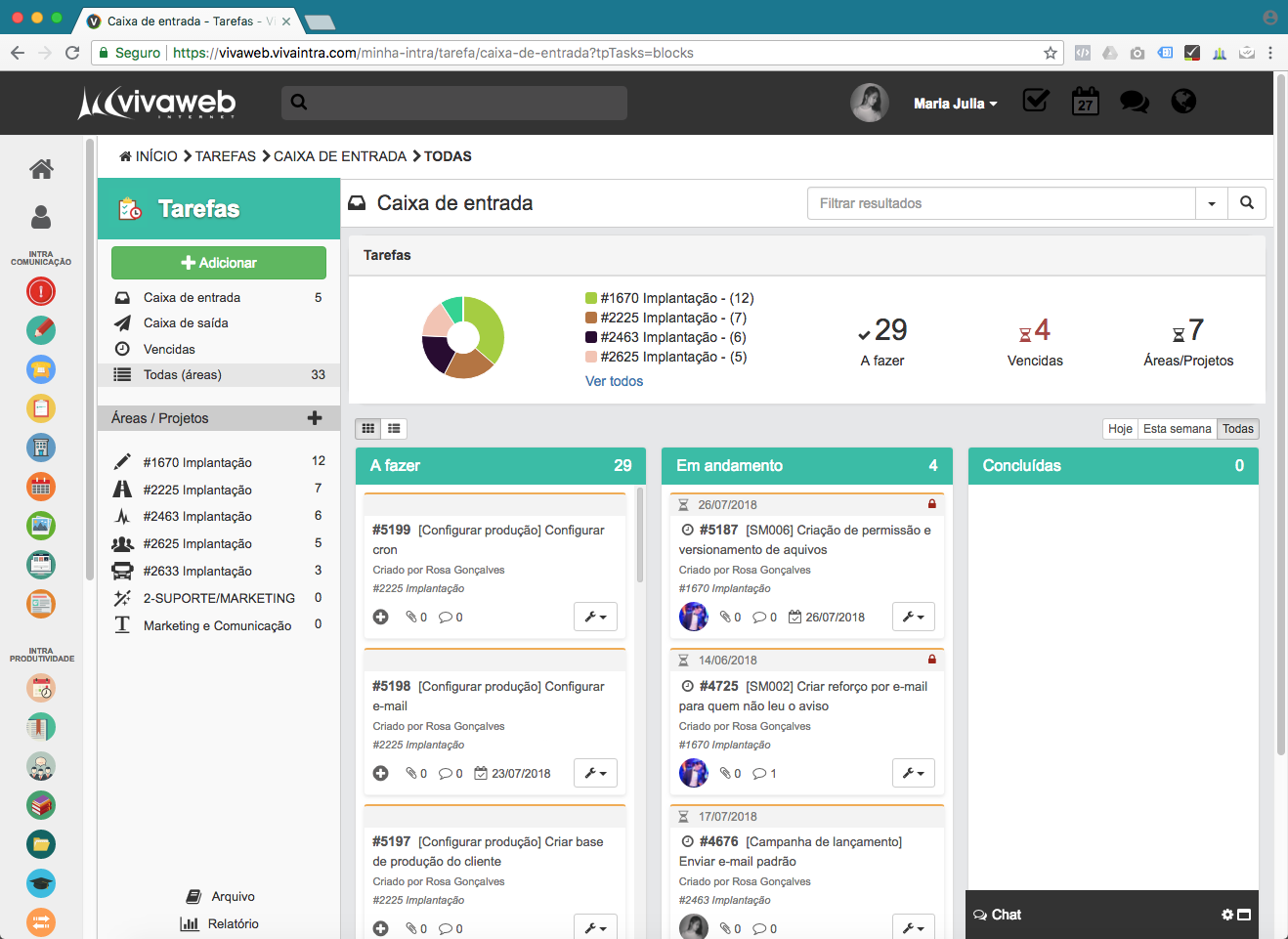 Gerenciamento das atividades a serem realizadas no dia-a-dia de sua empresa, registrando-as no sistema de forma organizada, agrupadas por áreas/projetos ou